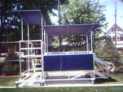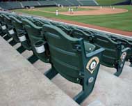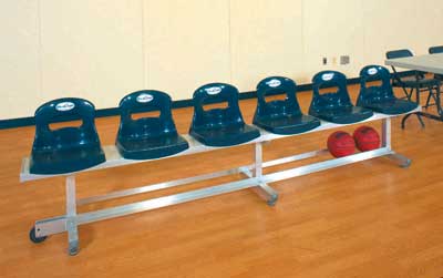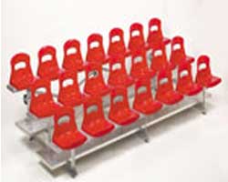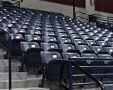 The seat mounts on an aluminum frame that can curve and contour to the stadium or auditorium. They are available with backs, armrests, and name/number plates.